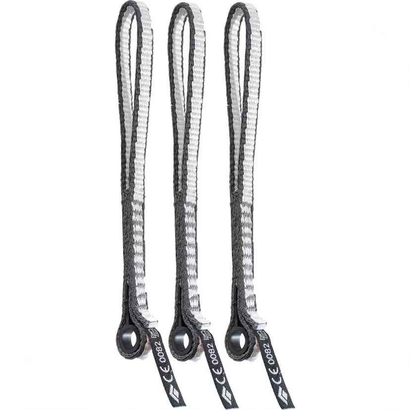 BD Black Diamond 10 Mm Dynex Dogbone are slings for climbing quickdraws, sold in packs of 3, 10 mm wide and with two lengths of 12 cm and 16 cm