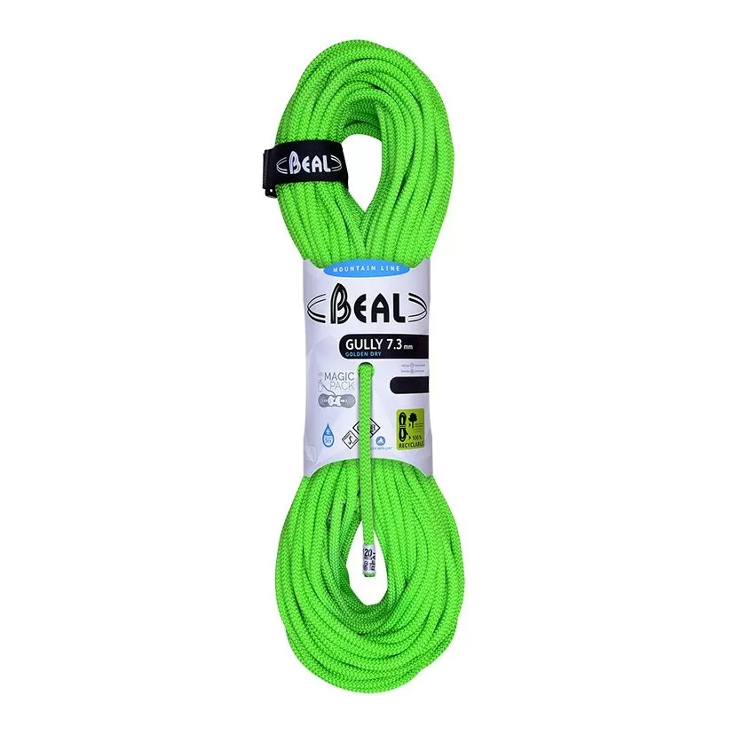 Beal Gully 7.3 mm Unicore Golden Dry ice climbing half rope can be used both as a half and as a twin. It is perfect for ice and the most challenging adventure terrains.