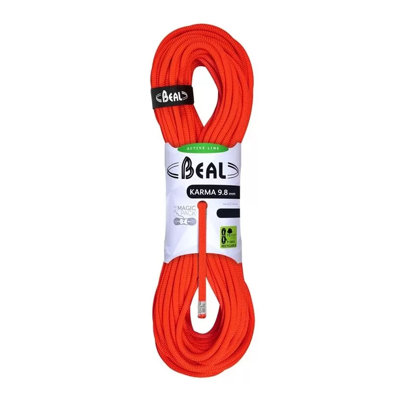 Beal Karma 9.8 mm corda arrampicata singola perfetta per le uscite in falesia e per arrampicare in tutta sicurezza grazie al diametro sopra la media, perfetto per l’utilizzo con gran parte degli assicuratori in commercio. Si presenta morbida e scorrevole al tatto, senza mai dare l’impressione di essere troppo sottile. La bassa forza di arresto contribuisce a rendere le cadute meno traumatiche.