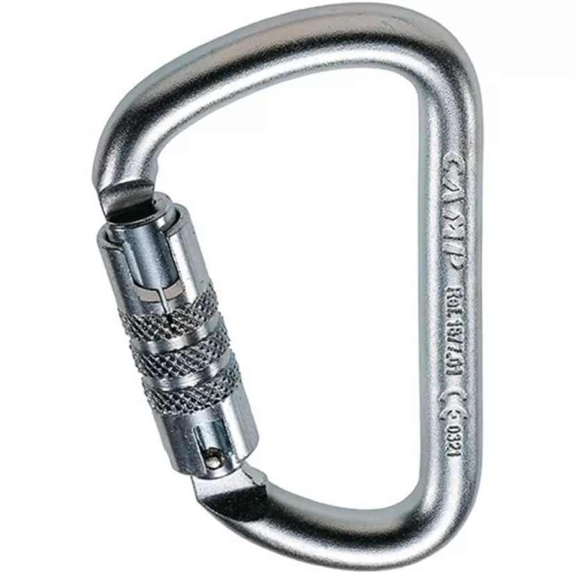 CAMP D Pro 2Lock è un moschettone da lavoro a D con un altissimo carico di rottura fatto in acciaio al carbonio zincato. Apertura con leva a doppio movimento per maggior sicurezza.