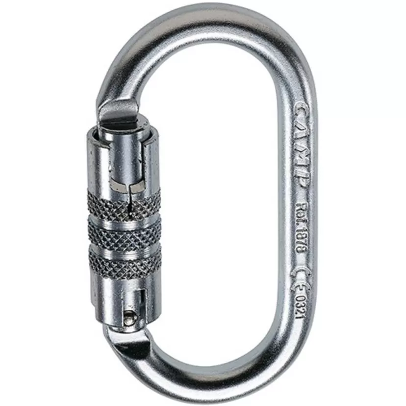 CAMP Oval Pro 2Lock è un moschettone da lavoro ovale con apertura a doppio movimento e caratterizzato da un carico di rottura notevole su entrambi gli assi.
