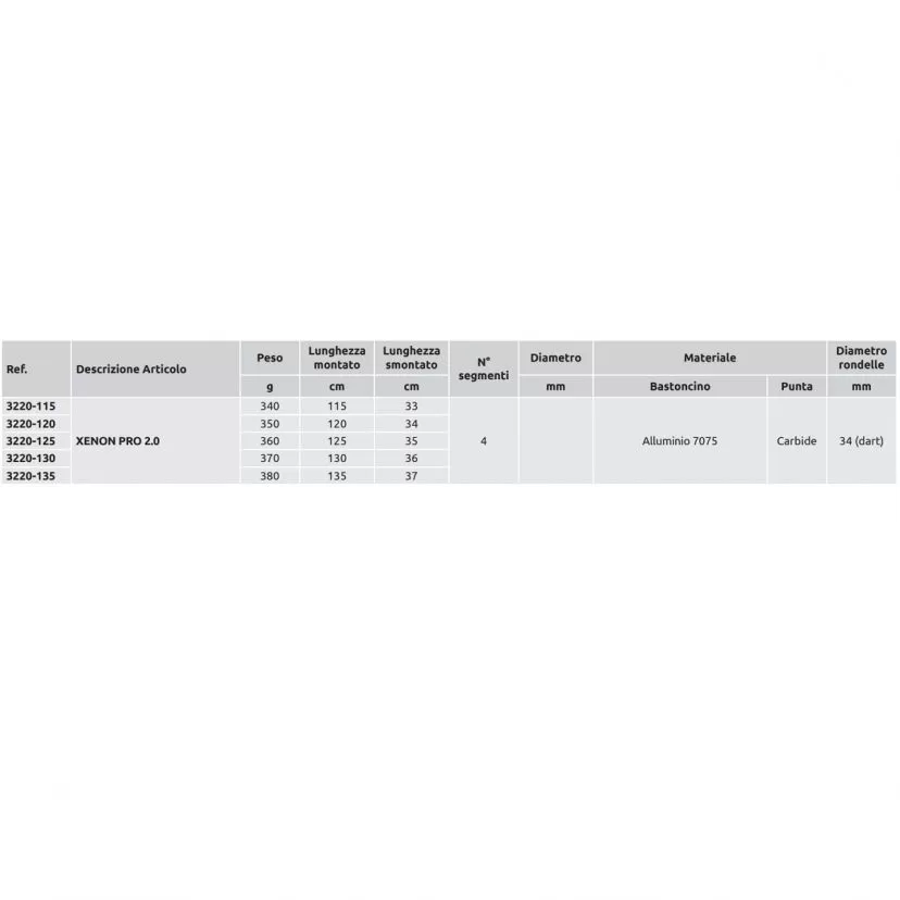 Made of 7075 aluminum and carbide tip, they are available in five lengths (115, 120, 125, 130, 135 cm) and made up of four segments that can be assembled quickly thanks to the internal Kevlar cord.