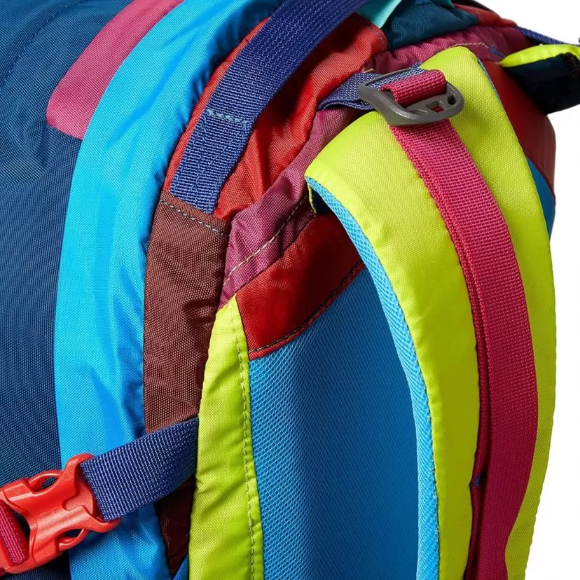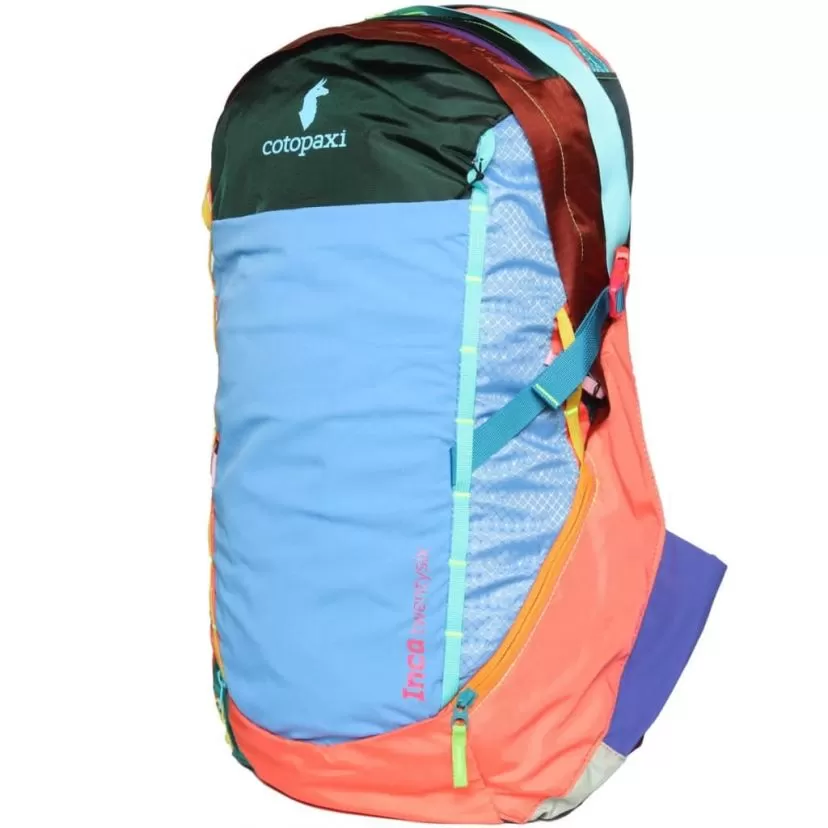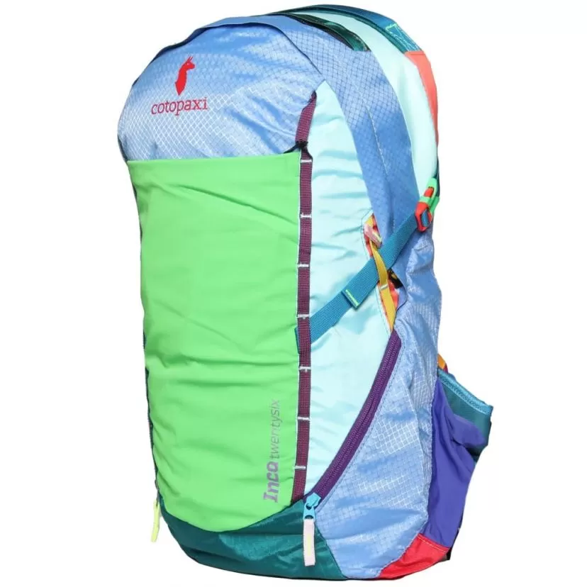 The Cotopaxi Inca 26L backpack is a lightweight and technical rucksack suitable for lean adventures on rock, dirt or snow. It features a clean design, a clever storage system and a super-comfortable padded mesh suspension for increased ventilation. The main compartment features a hydration pouch that doubles as a laptop sleeve for city travel, while external chains and trekking pole attachments allow you to attach extra gear to the outside of the pack. Each Inca Del Día is made from 100% recycled fabrics to prevent high-quality materials from ending up in landfills.
