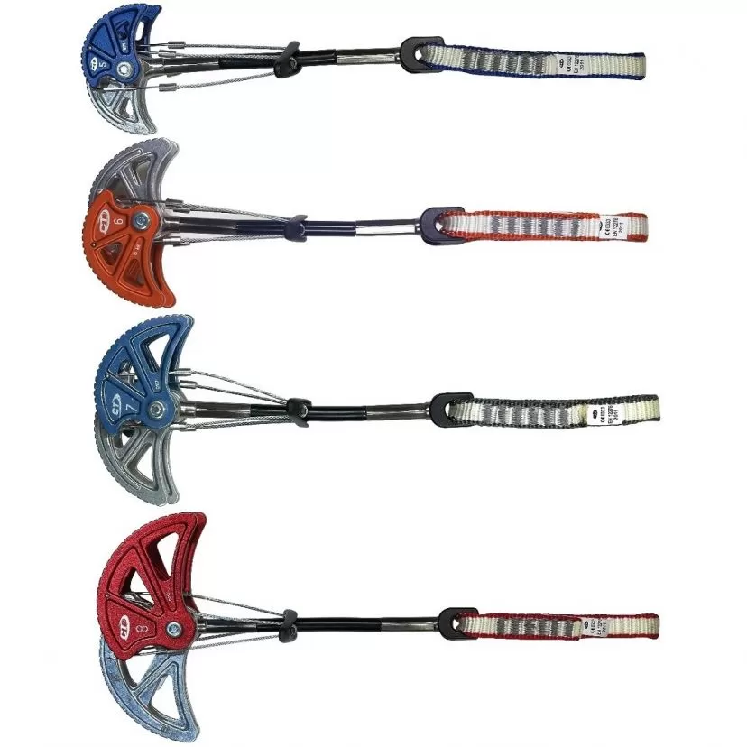 CT Climbing Technology Anchor Friends set da arrampicata, in lega leggera nelle misure da 5 a 8. Realizzati con camma forgiata a caldo, leggera ed estremamente resistente. Ogni misura è identificata da un colore diverso della camma e della fettuccia.
