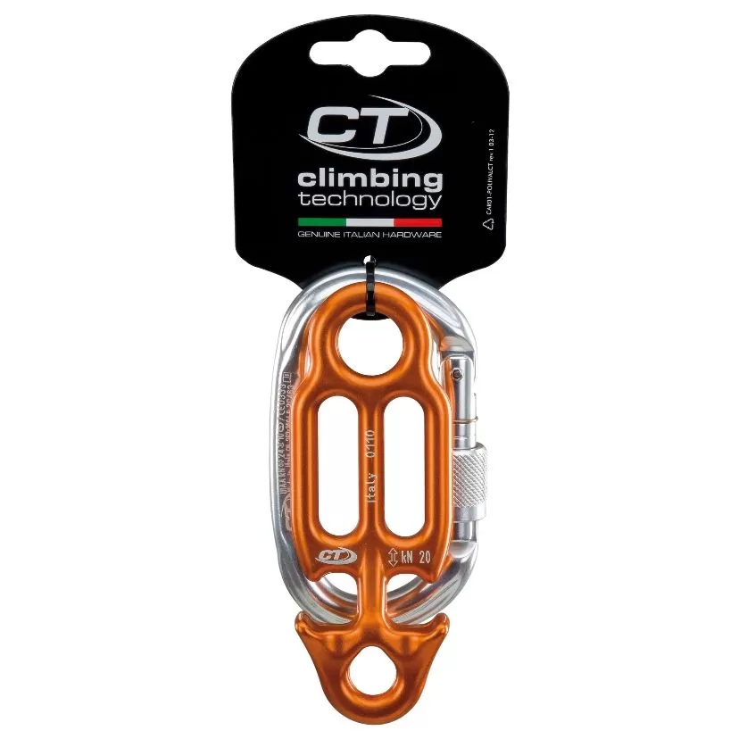 CT Climbing Technology Groove assicuratore in lega leggera, forgiato a caldo. Può essere utilizzato con mezze corde, corde gemelle e singole. Il foro superiore è ideato per l’ancoraggio, mentre quello inferiore per l’aggancio alla longe nella discesa in corda doppia. Consente, inoltre, il recupero indipendente e autobloccante di uno o due secondi. Le due cave di frenaggio inferiore permettono di posizionare le corde per regolare la velocità in discesa.