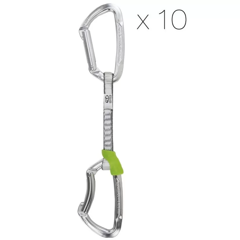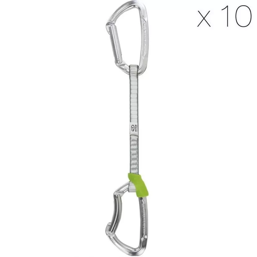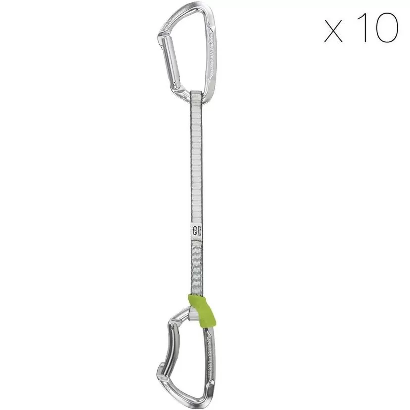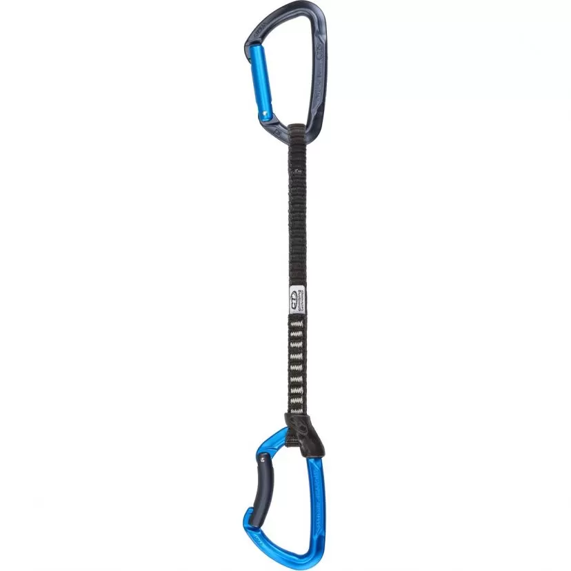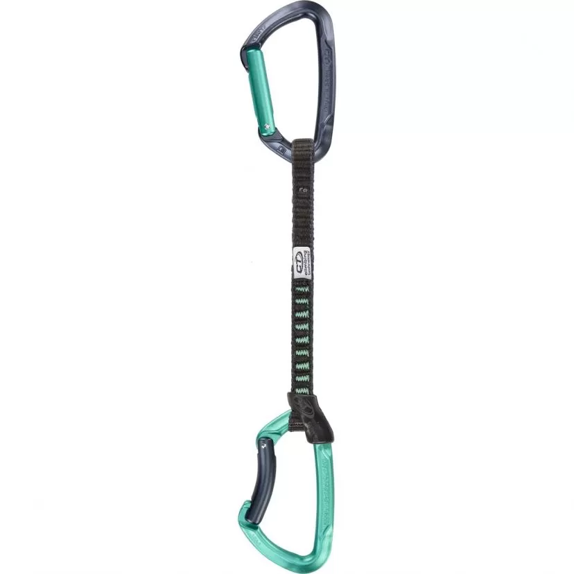CT Climbing Technology Lime Dy quickdraw. Multi-purpose and light, it is ideal for sport climbing, for shooting and for mountaineering. The upper carabiner has a straight lever, while the lower one has a curved lever. Both take advantage of the catch-free closure that facilitates the coupling and release without the risk that the rope or other anchors become entangled. The light and resistant Dyneema sling has a thickness of 11 mm. The rubber stopper has the purpose of preventing rotation during use and protecting it from wear.