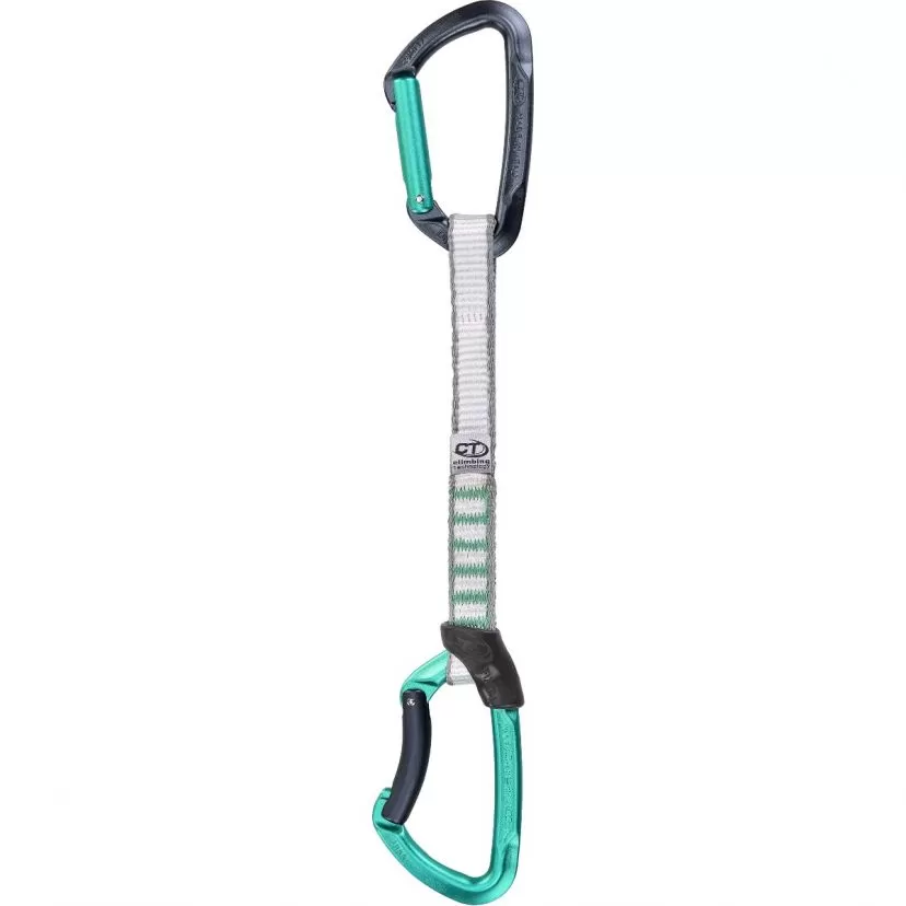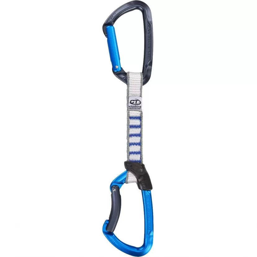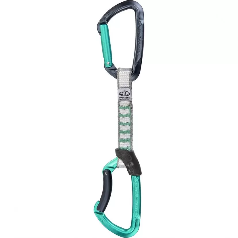 CT Climbing Technology Lime NY is a rugged and lightweight climbing quickdraw, ideal for sport climbing and mountaineering. The upper carabiner has a straight lever, while the lower one has a curved lever. Both take advantage of the catch-free closure that facilitates the coupling and release without the risk that the rope or other anchors become entangled. The polyamide webbing has a thickness of 16 mm. The rubber stopper has the purpose of preventing rotation during use and protecting it from wear.