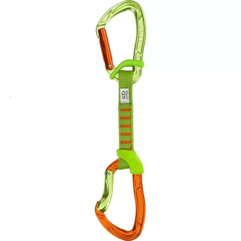 I moschettoni Nimble hanno un alto carico di rottura sia sui due assi sia a leva aperta. Sono poi molto leggeri ed ergonomoci quindi facili da utilizzare. Il moschettone inferiore ha una leva particolarmente curva e forgiata a caldo: questo facilita l’inserimento della corda.