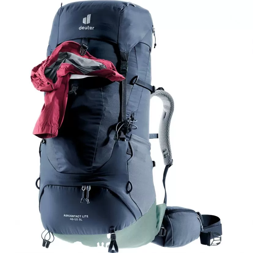 The Deuter Aircontact Lite 45 + 10 l SL is a trekking backpack for ambitious long-distance expeditions with a snug, comfortable fit and highly efficient load transfer. The Aircontact Lite full-contact back system made of open-cell foam with a ventilation channel produces remarkably effective breathability and provides space to relieve strain on the spine. The result is an exceptional balance of comfort and lightness for long days on the road.