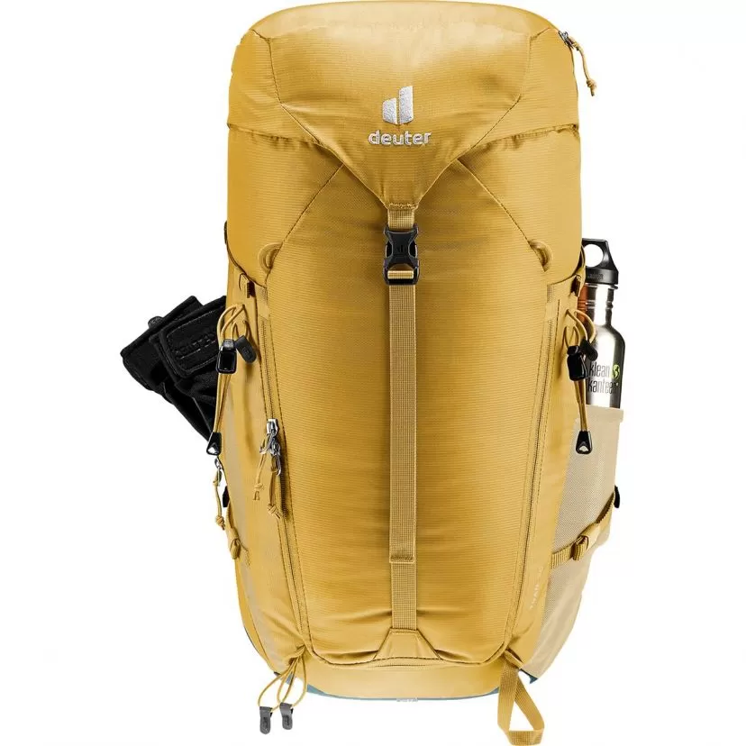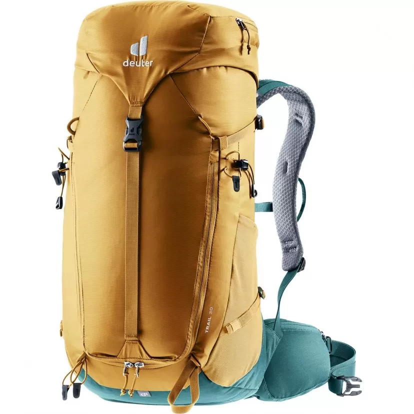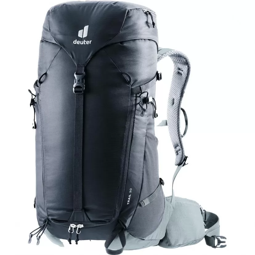 Deuter Trail 30 is a hiking backpack whose main feature is that it is truly breathable! The small contact surface area and large ventilation channels of the deuter Airstripes back system, combined with the perforated shoulder straps and hip flaps (with pockets), ensure maximum airflow and even weight distribution for a snug and secure fit on any terrain. The flat lid gives the head room to move, even with a helmet. The loops on the shoulder straps allow karabiners for via ferrata climbing to be kept close at hand. Thanks to the large zipped front opening and the side pockets, equipment is always easily accessible.
