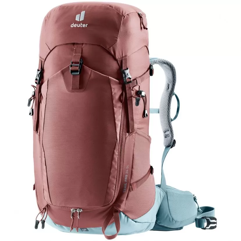 The Deuter Trail Pro 34l SL is a women’s hiking backpack that provides excellent comfort and a snug, secure fit on multi-day routes. The flat lid leaves space for the head to move, even with a helmet. The loops on the shoulder straps allow carabiners for via ferrata routes to be kept close at hand. While equipment and gear are easily accessible thanks to the large zipped front opening or the side pockets.