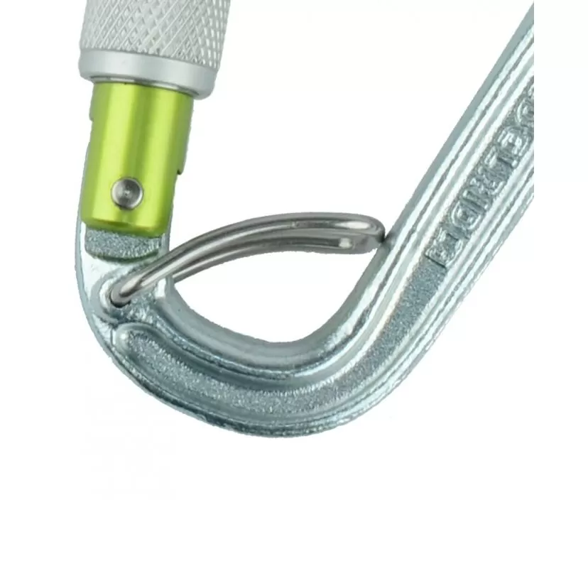 Edelrid HMS Bruce Steel FG is a super strong and compact screwgate carabiner, perfect for making safety and also for recovering. A lever on the short side allows you to keep the carabiner in position on the harness avoiding rotation on the minor axis.