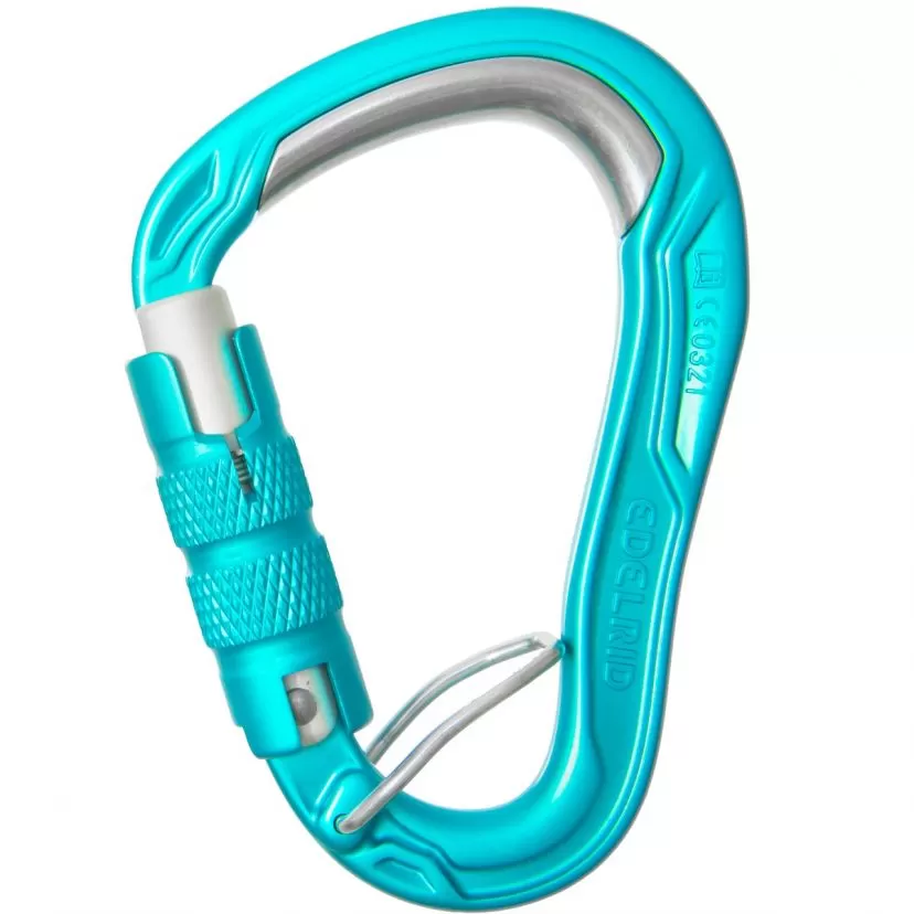 Edelrid HMS Bulletproof Triple FG is characterized by a triple movement triact-lock opening, which requires three actions to be opened: sliding, turning and then pressing the lever.