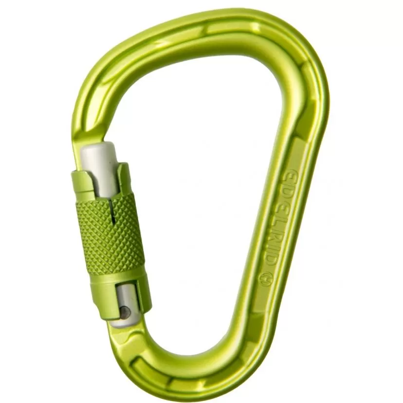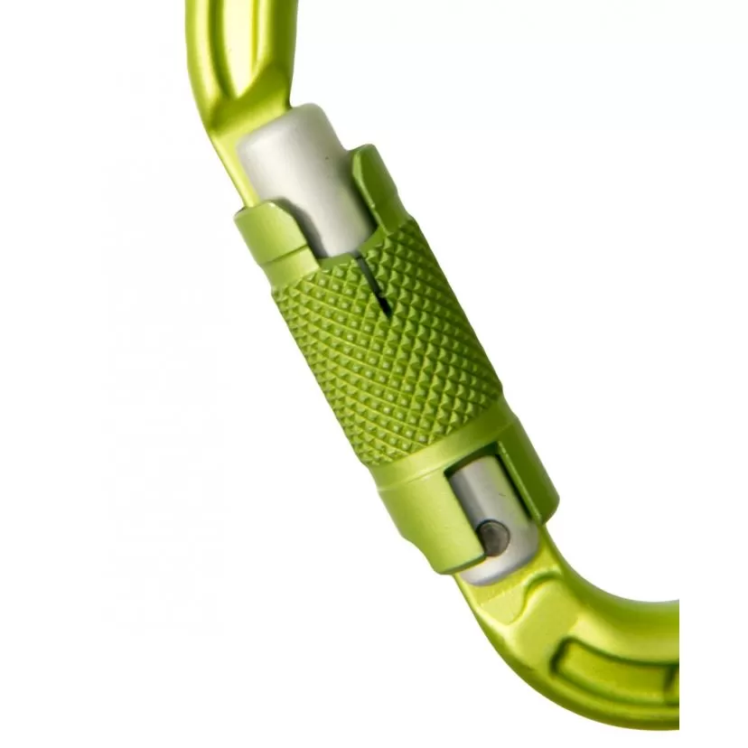 Edelrid thinks of a carabiner that you can handle even with one hand, which requires two actions to be opened: rotation and subsequent pressure of the lever.