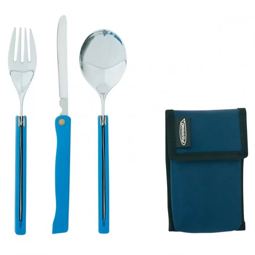 This Ferrino Travel folding cutlery set is designed to be carried with you on travel and camping. They are robust and resistant thanks to the stainless steel construction, moreover being foldable they take up very little space and can be stored in the nylon case, which can be attached to the belt, thanks to a buttonhole.