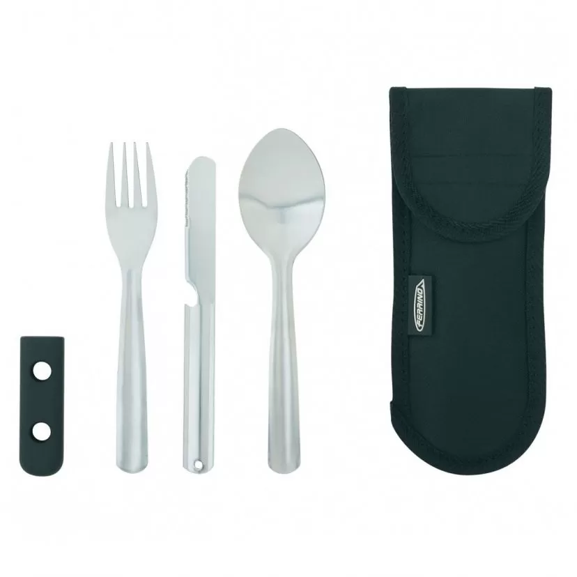This Ferrino set of stainless steel cutlery with case is designed to be carried with you on trips and camping and includes a spoon, fork and multipurpose knife. They are sturdy and resistant thanks to the stainless steel construction and can be stored in the box in the package. There are also loops to hook the case to your belt.