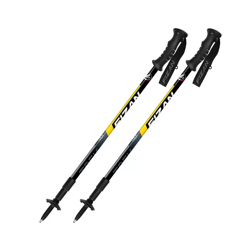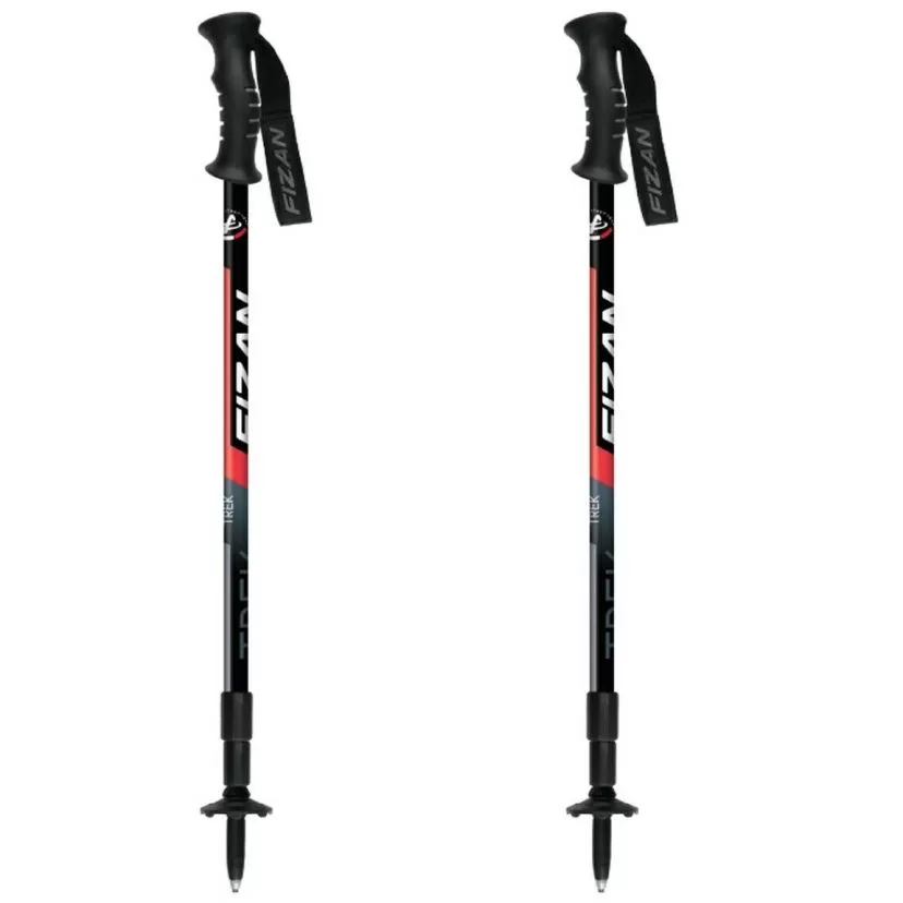 Fizan Trek trekking poles made of aluminum with three sections (18/16/14 mm) extendable from 64 to 140 cm. Equipped with a Flexy locking system.