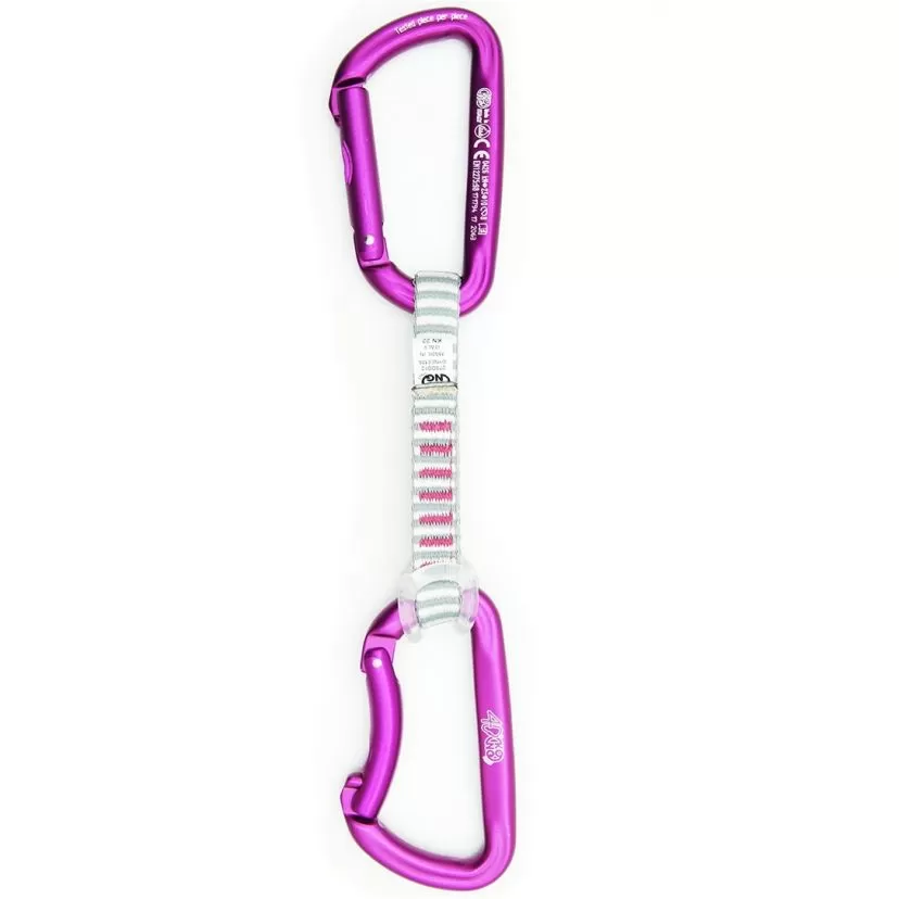 With its bright colors, dive into the great tradition of climbing fluo, the Trapper is very light thanks to the compact and minimal carabiners, built with a keylock nose that avoids becoming entangled involuntarily during maneuvers. It is also equipped with a firm transparent tape for the rope-side carabiner.