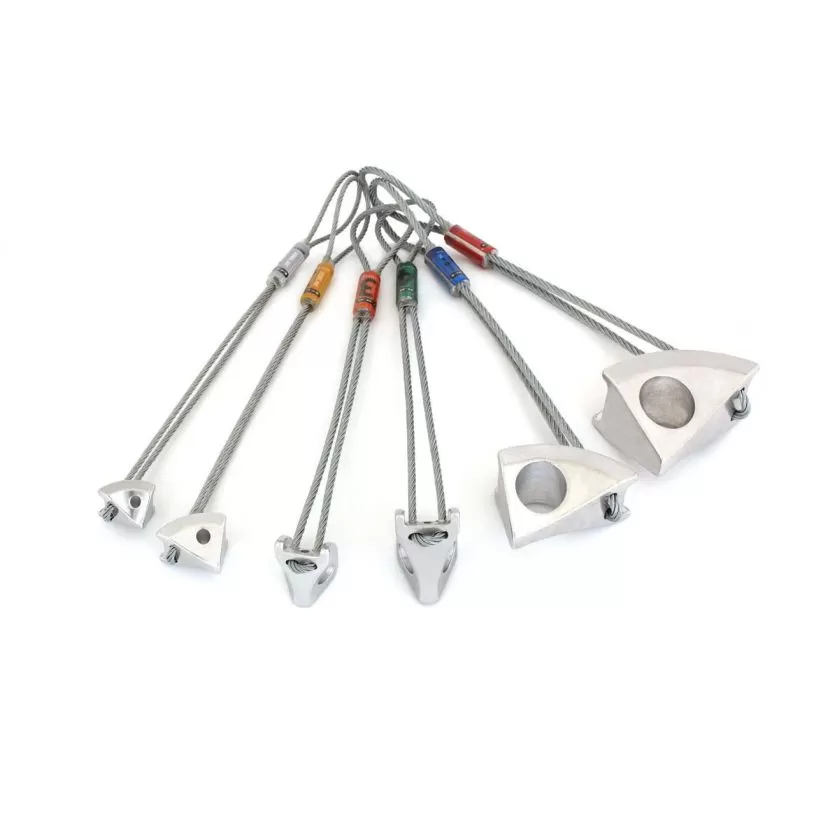 Gli Abalak di Kouba sono dadi da arrampicata estremi: a forma di V per aumentare la solidità della protezione, hanno la testa in alluminio e il cavo in acciaio.