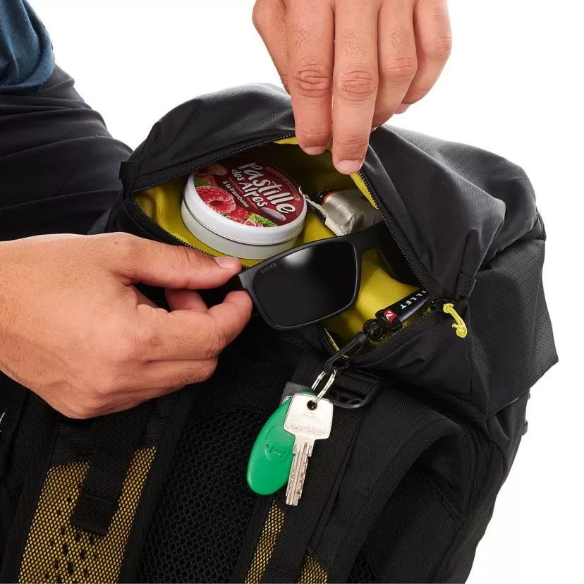 The adjustable belt allows you to always keep the backpack in place, helping you in the most technical terrains. There are also comfortable compression straps that can be used to adjust the volume of the backpack, while trekking poles or other items you may need can be secured by inserting them into the mesh pockets.