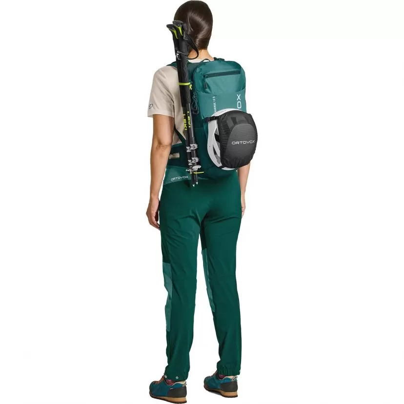 The Ortovox Traverse 18 is a trekking backpack made for year-round use on large and small peaks, although the TRAVERSE 18S is better suited for single-day hikes.