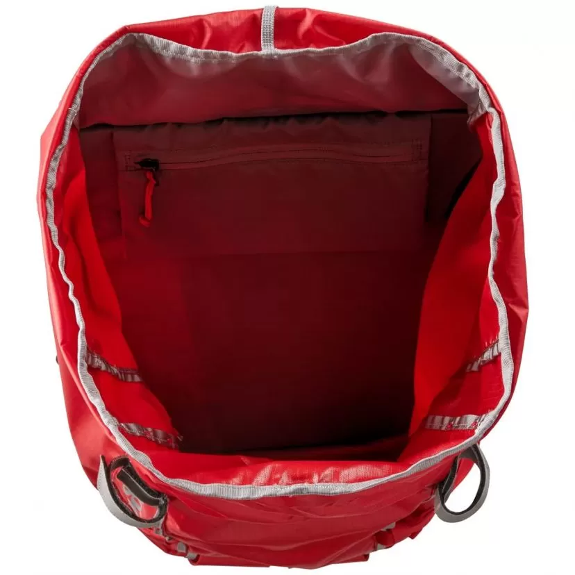 The exterior of the backpack offers the possibility of hanging ice axes and is equipped with two rows of daisy chains designed to increase the load capacity; the upper part has a recovery ring which is also convenient for transport.