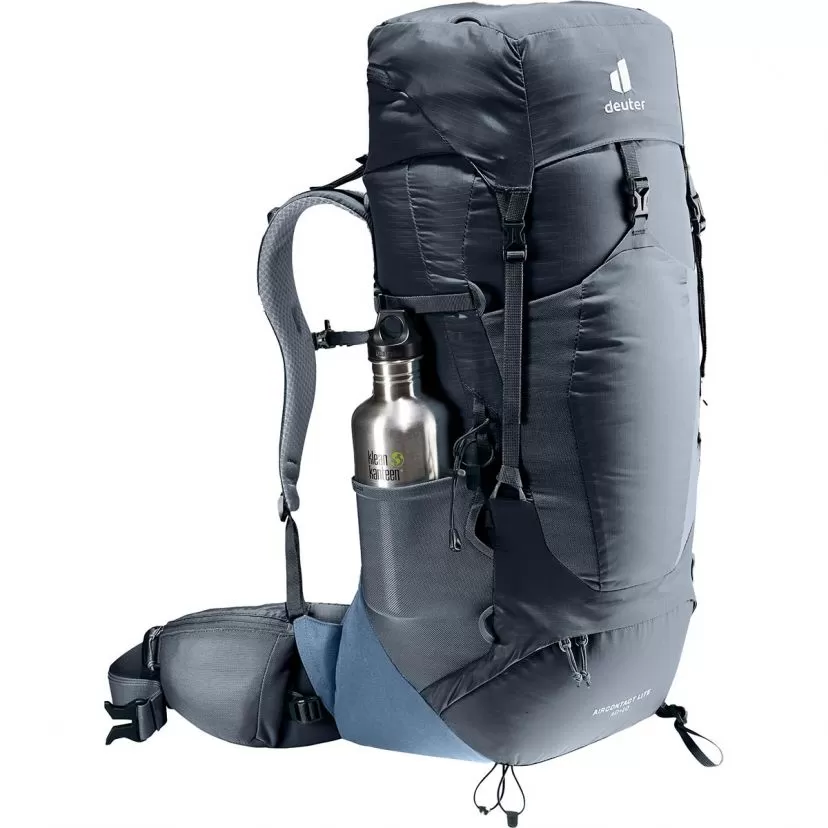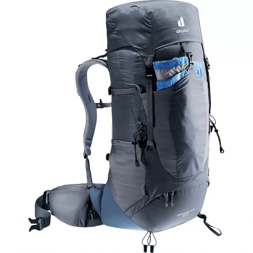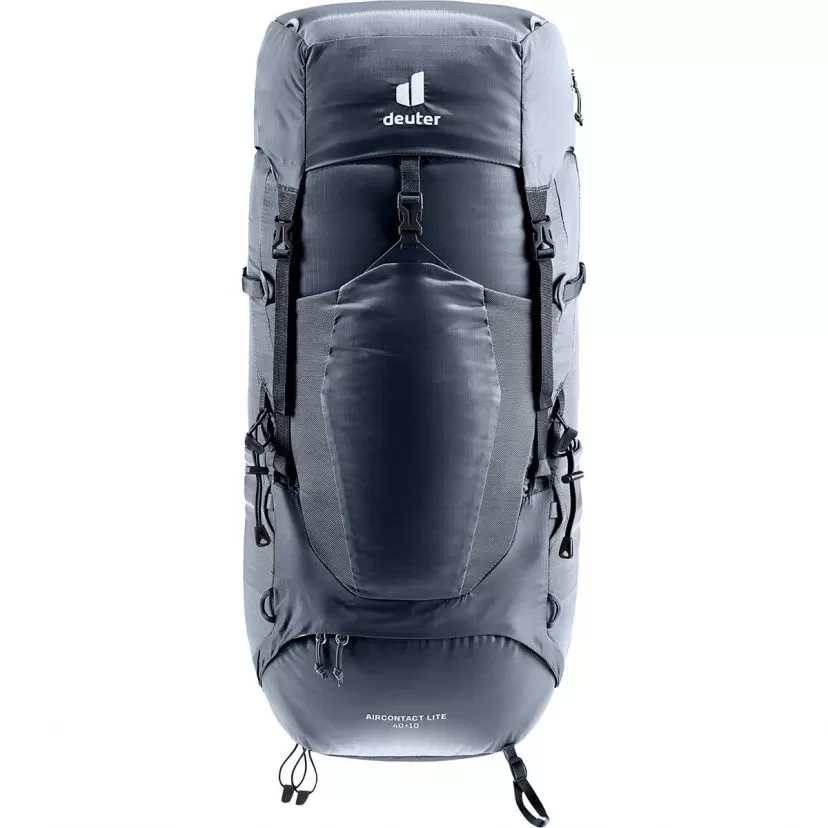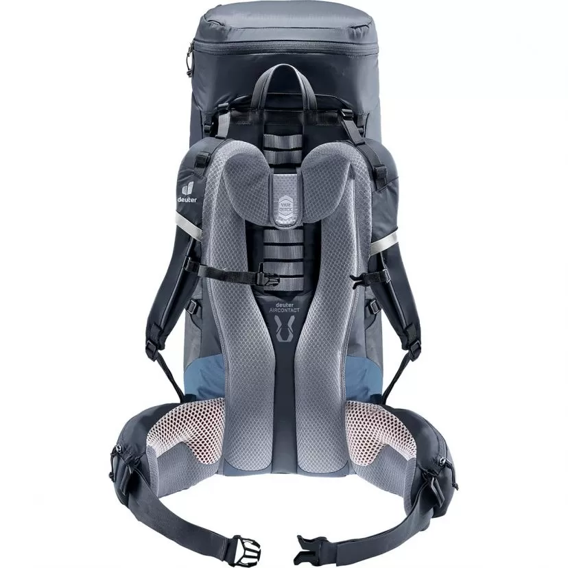 Deuter Aircontact 40 + 10l is a lightweight trekking backpack for ambitious long-distance endeavours and features VariQuick back length adjustment and ECL hip flaps for a comfortable, snug fit and highly efficient load transfer. The full-contact Aircontact Lite back system, made of open-cell foam with a ventilation channel, generates noticeably effective breathability and leaves space to relieve tension on the spine. The result: an excellent balance between comfort and lightness for long days on the trail.