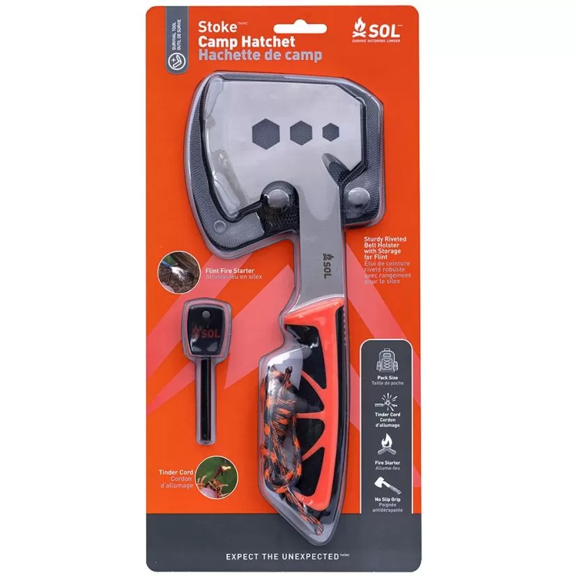 SOL Stoke Camp Hatchet is a multifunctional camping hatchet that doubles as an all-in-one fire ignition tool.