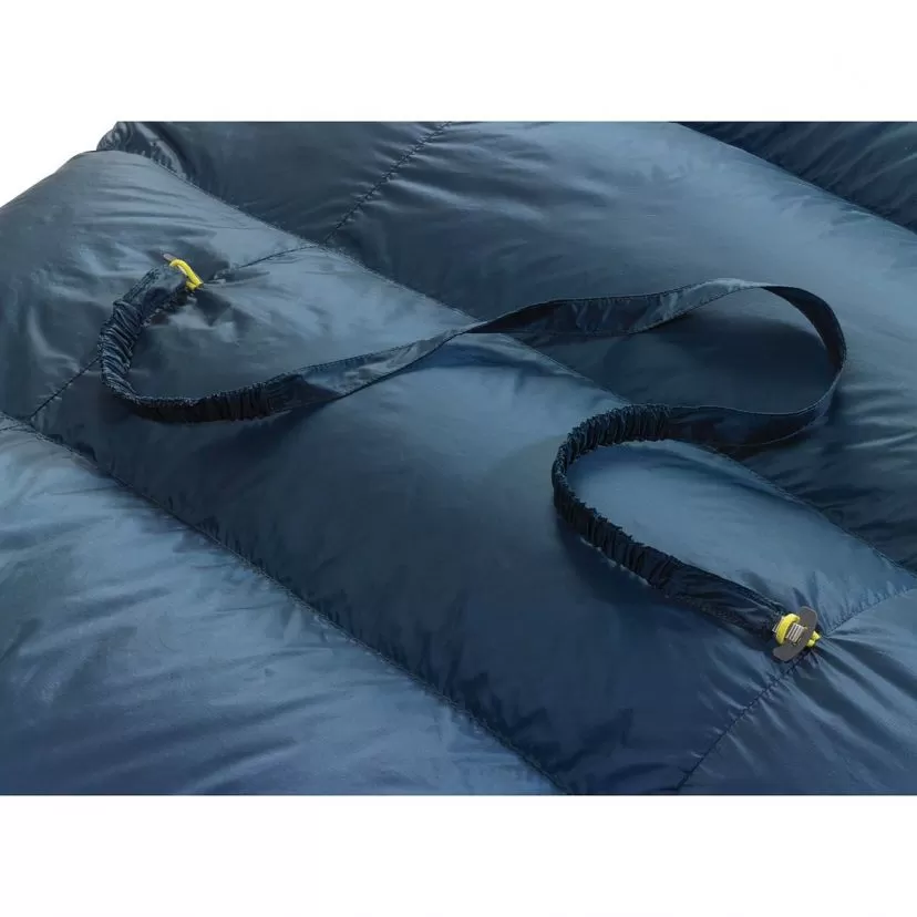 The outside of the sleeping bag is in fact made of 10D Nylon RipStop with a DWR treatment that makes it water-repellent. The padding, on the other hand, is in 900 Fill Goose Nikwax Hydrophobic Down RDS down, which in addition to having exceptional thermal performance is also ultra-light and remains dry 60 times longer than untreated down in conditions of high humidity.