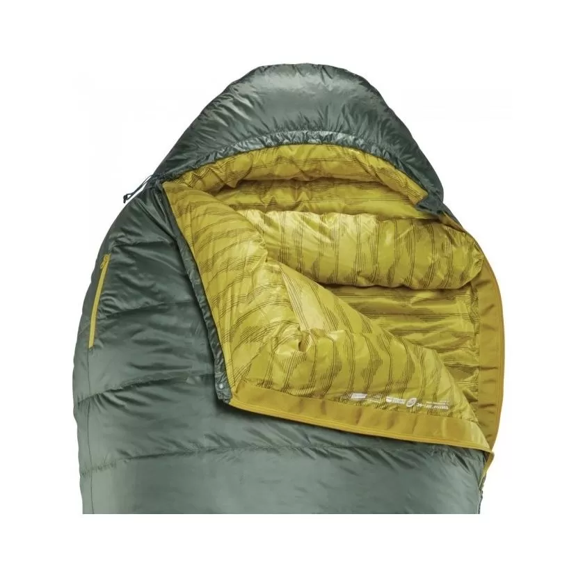 The SynergyLink Connectors allow you to connect the sleeping bag with the Therm a Rest mattresses, always keeping them in the correct position and preventing them from moving while you are sleeping. The shape of the bag also allows you to sleep comfortably in different positions, while the Toe-asis pocket keeps your feet insulated and warm!