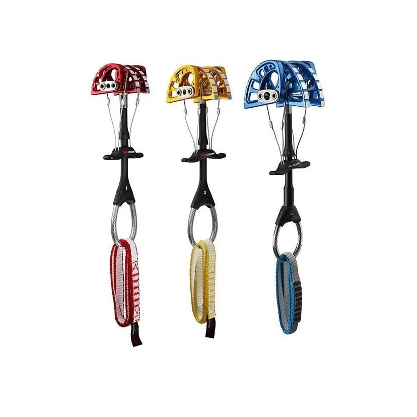 Wild Country’s Friends are the latest version of the unbelievably successful camming device invented by Mark Vallance during the 70s. Its hot forged construction in 6082 alloy, combined with the hollow lobes, render it extremely light to carry and resistant when put to work. The twin axles guarantee a great range of placement for each size. The 12 mm dyneema sling is doubled but it can also be used as single sling, in order to enhance its length. The New Friend by Wild Country is without a doubt among the best camming device you will ever find around.