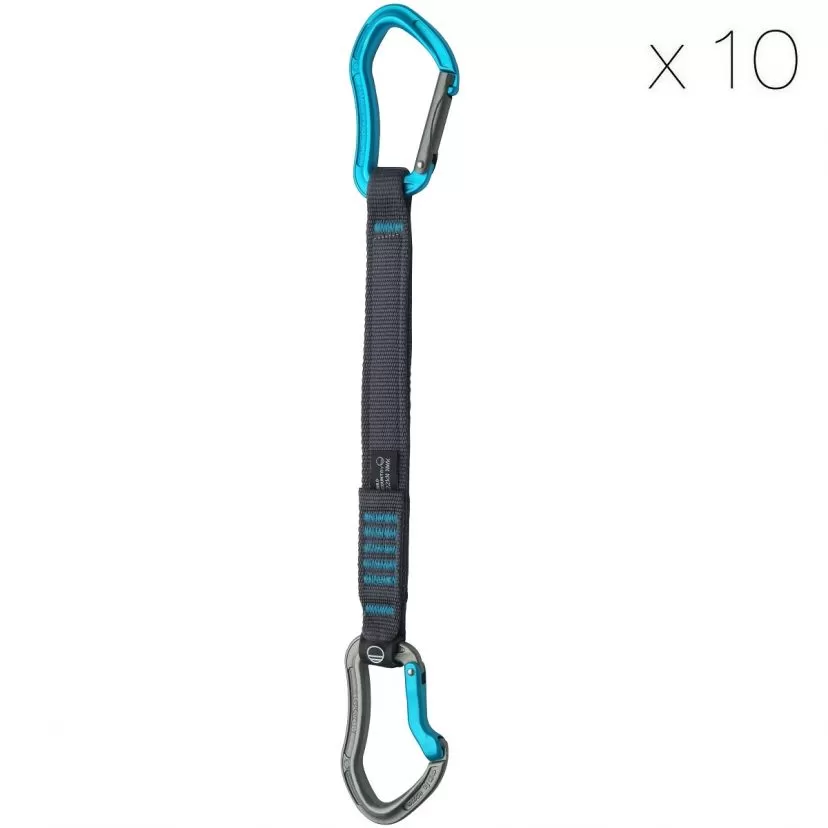 Super light thanks to the hot forged carabiners, extremely comfortable to hold thanks to the tapered sling of variable width and still ergonomic to allow you a quick and easy return.
