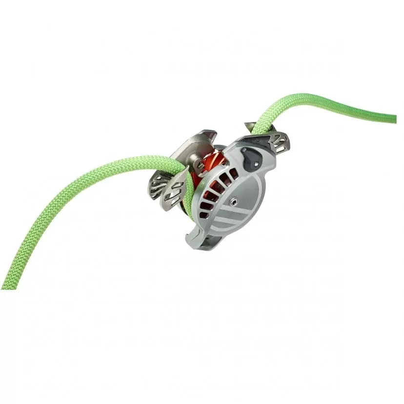 The only automatically locking belay device which has a completely panic-proof locking mechanism. The Revo has no method of over-riding the locking mechanism, during belaying, or when lowering a climber.